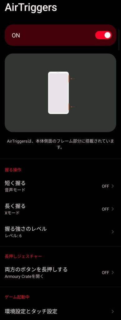 측면에는 게임 중에 탭 및 슬라이드 동작을 할당할 수 있는 AirTrigger가 있습니다.