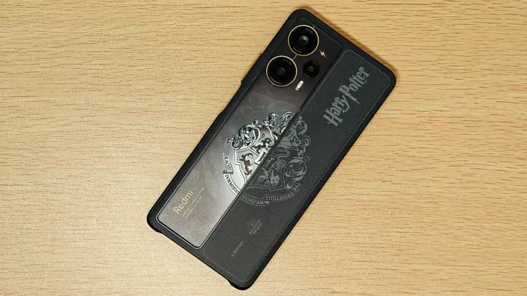 Redmi Note 12 Turbo의 뒷면은 플라스틱으로 되어 있어 비용이 절감됩니다.