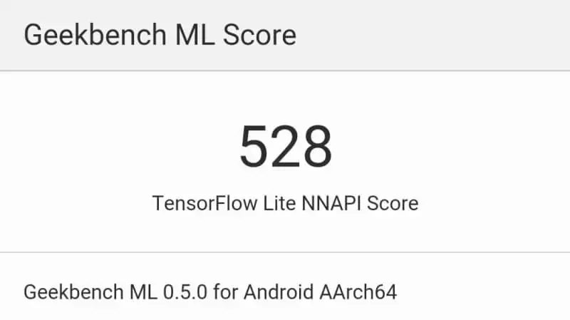 TensorFlow Lite/NNAPI를 사용하여 Geekbench ML에서 측정한 AI 성능은 528점이었습니다.