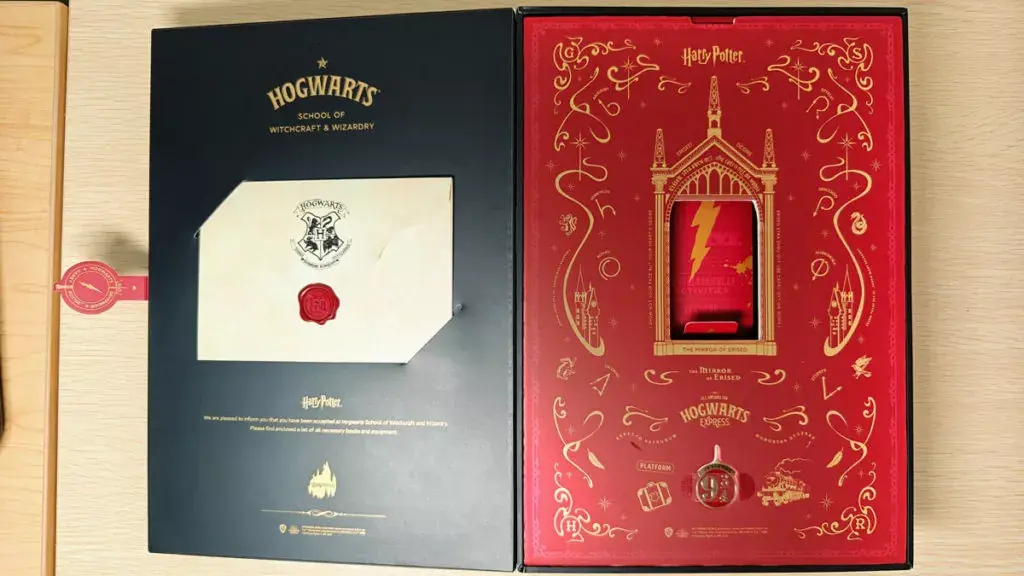 해리포터 에디션의 포장은 일반판과 달리 상당히 고급스럽고, 검정색 바탕에 호그와트 마법학교 문장과 기타 금색 장식이 새겨져 있습니다.